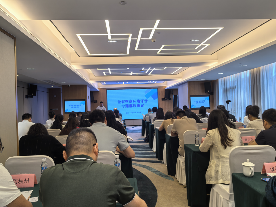 8月29日,全省营商环境评价专题解读研讨暨优化营商环境工作片区座谈会在雅安市成功举办。本次活动聚焦营商环境评价成果转化与实践应用,邀请成都、眉山、攀枝花、甘孜、凉山、阿坝等地参与营商环境评价工作的单位代表参会,共同为全省营商环境优化出谋划策。活动现场,第三方评价机构以《2024年度四川省营商环境评价报告》为核心,围绕“数据解读—趋势分析—实践指导”维度详细梳理了评价工作的发展历程和2024年度全省各地营商环境建设的显著成效,并从综合评估、纵向对比、工作亮点、优化建议等方面,针对性地为各个参会城市营商环境表现进行多维剖析。